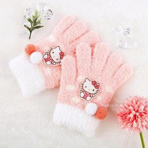 겨울 학생을 위한 새로운 일본 및 한국 어린이 장갑: 플러시 및 두꺼운 따뜻한 이슬 다섯 손가락 장갑