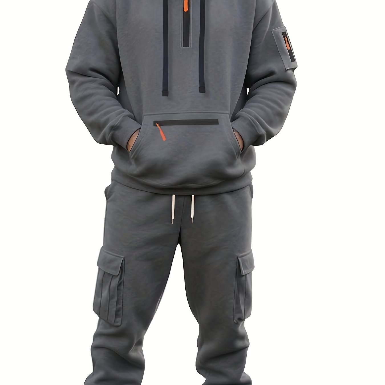 TEMU 남성용 스타일리시 캐주얼 스포츠 후드티 지퍼 장식 세트