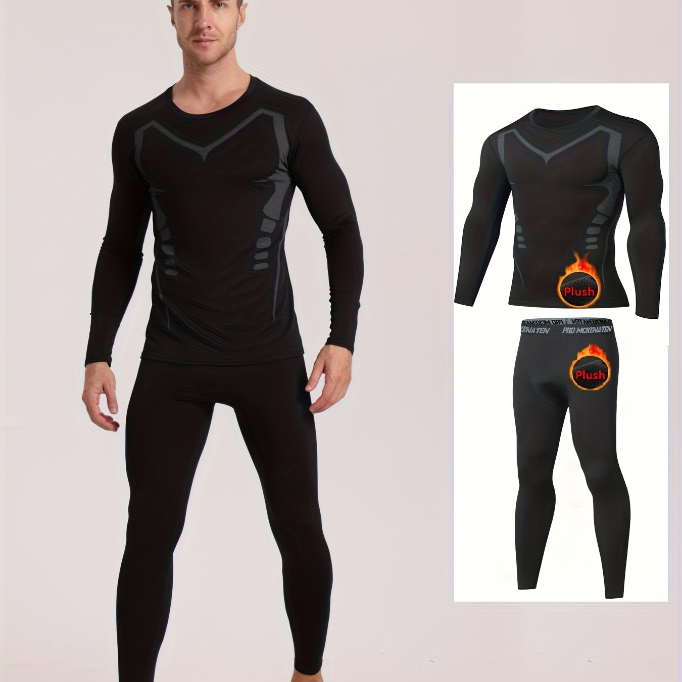 TEMU 남성용 겨울용 보온 플러시 베이스 레이어 세트, 두꺼운 러닝 트레이닝 속건성 의류, 피트니스 타이트 스포츠웨어.