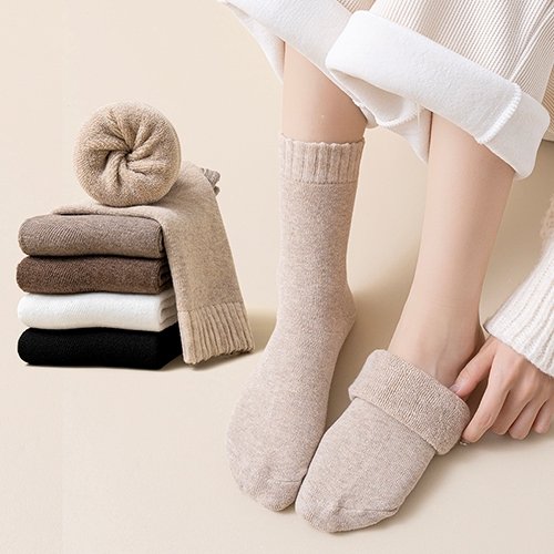 [5켤레세트] 도톰한 솔리드 통파일 방한 쿠션 양말