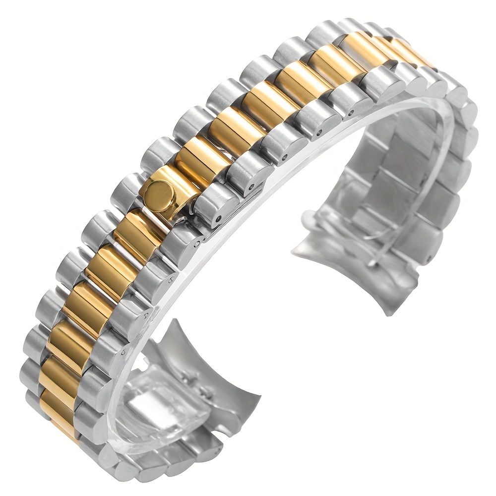 TEMU 1개 클래식하고 다용도 비즈니스 스타일 스테인리스 스틸 시계 스트랩, 롤렉스 서브마리너 시리즈 호환 가능. 축제 선물 (아버지의 날, 졸업 선물, 발렌타인데이 선물). 시계 액세서리 20mm(골드, 실버, 골드+실버)