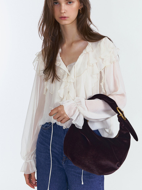 [아떼 바네사브루노 백] [COTON(꼬똥)] 브라운 단색 벨벳 토트백 AABA5E155W3