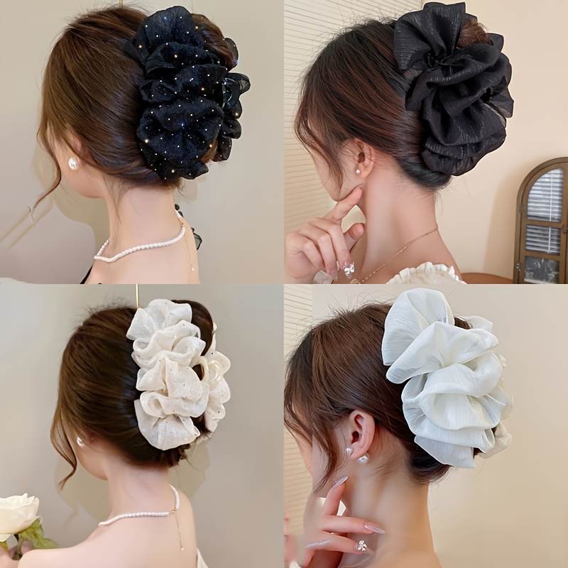 TEMU 여성용 우아한 블랙, 화이트, 실버 스타리 버블 헤어 클립 4개 세트, 데일리웨어, 파티, 웨딩 및 기타 행사에 적합