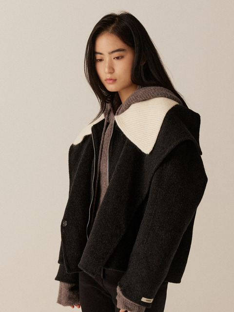 [리앙리에] 세련된 니트 콤비 울자켓 - 차콜