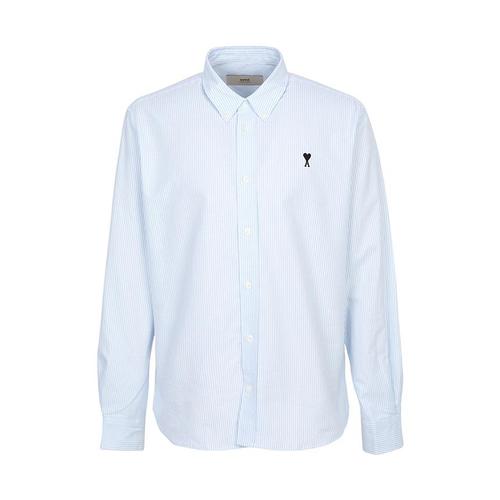 아미 스몰 하트 로고 스트라이프 코튼 옥스포드 셔츠 스카이 블루 BFUSH063 CO0031 450