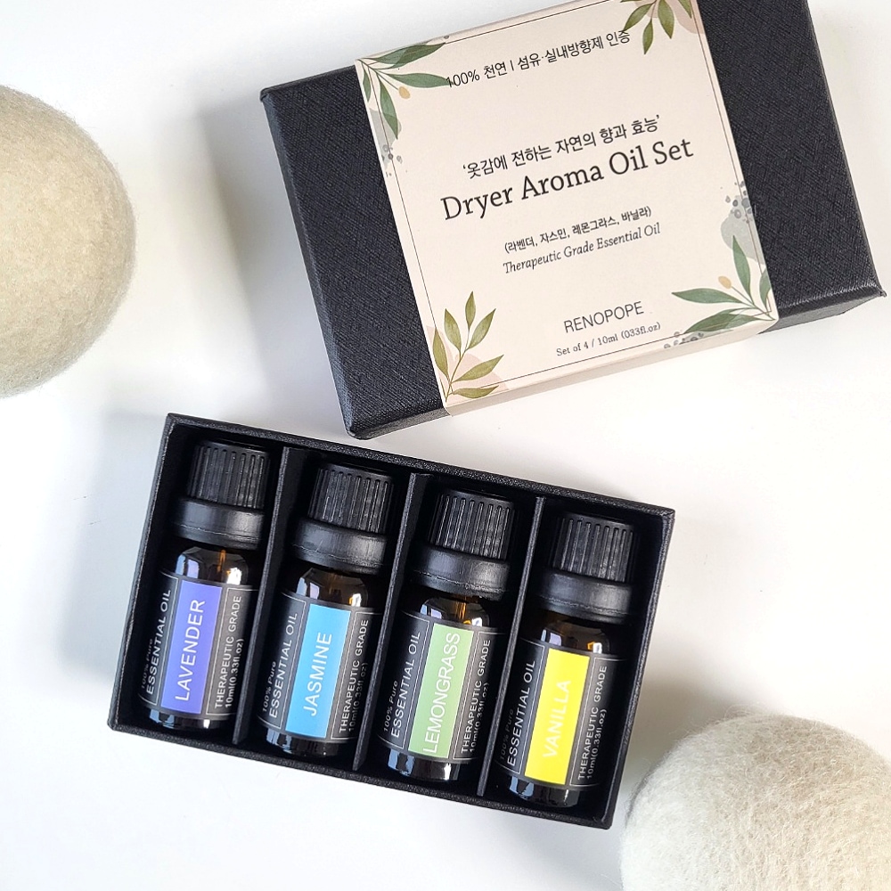 건조기 양모볼 아로마오일 4종세트 천연 에센셜오일 섬유 실내 방향제