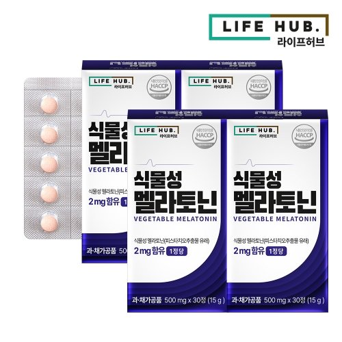 라이프허브 식물성 멜라토닌 2mg 함유 4박스(500mg x 120정) 4개월분