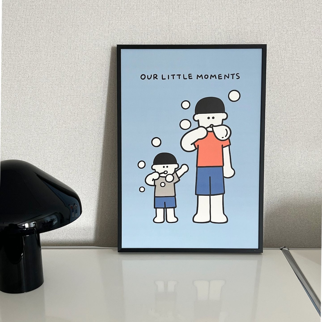 엄마랑 아빠랑 가족 포스터 A3 아이방 아기방 벽꾸미기 일러스트 귀여운 그림 액자