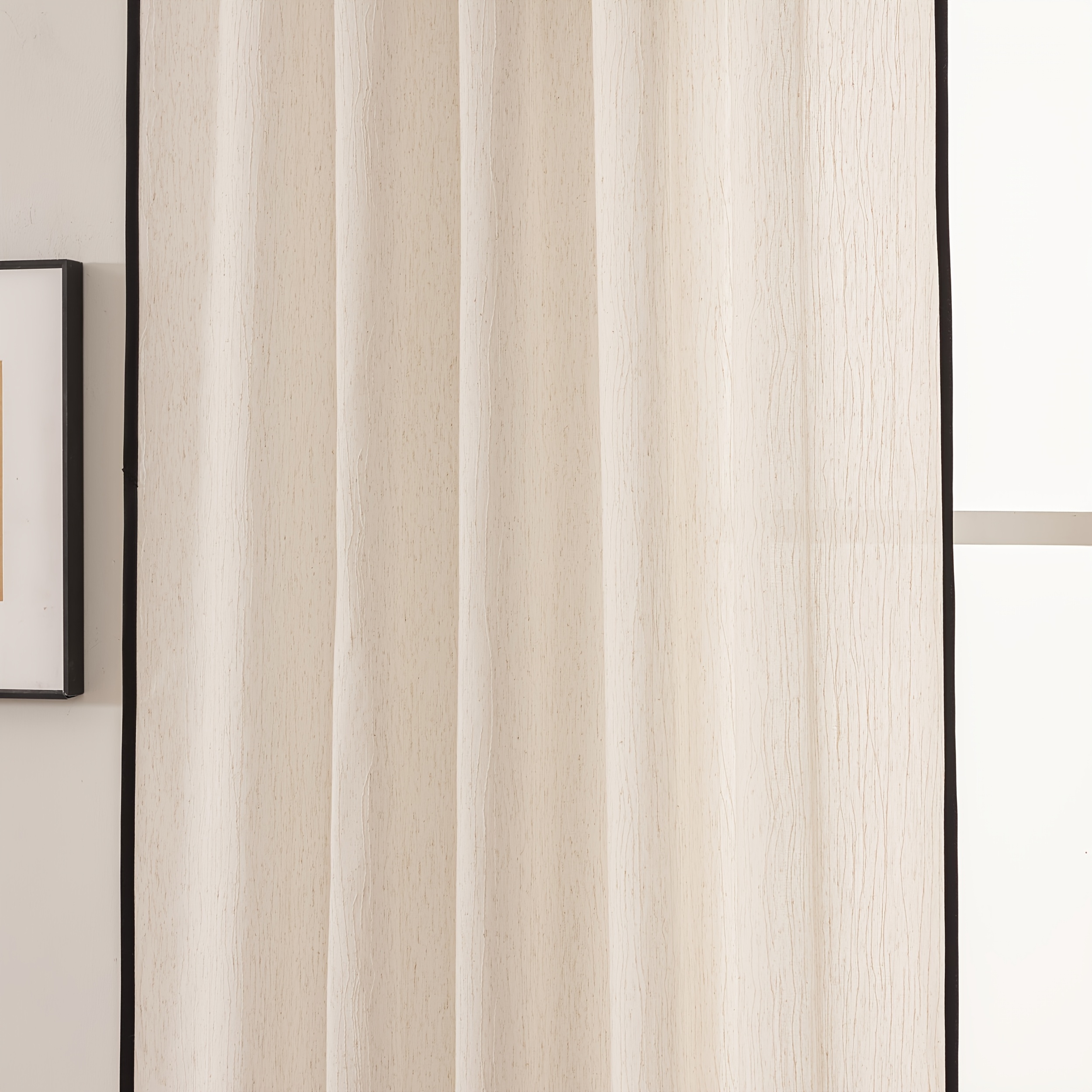 TEMU 1pc 프랑스 스타일 반투명 커튼 블랙 엣지 - 우아한 거실 및 침실 장식, 막대 포켓 디자인, 폴리에스터 재질, 발코니 또는 대형 창문에 이상적, 거실용 커튼|커튼봉