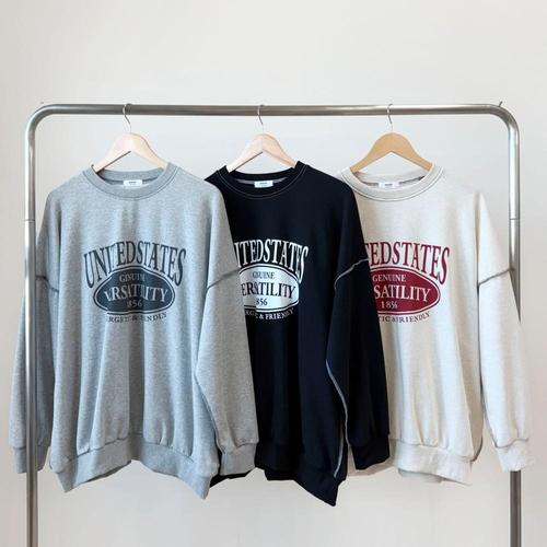 [옷자락] 남녀 공용 아웃스티치 프린트 오버사이즈 봄철 긴팔 티셔츠 맨투맨