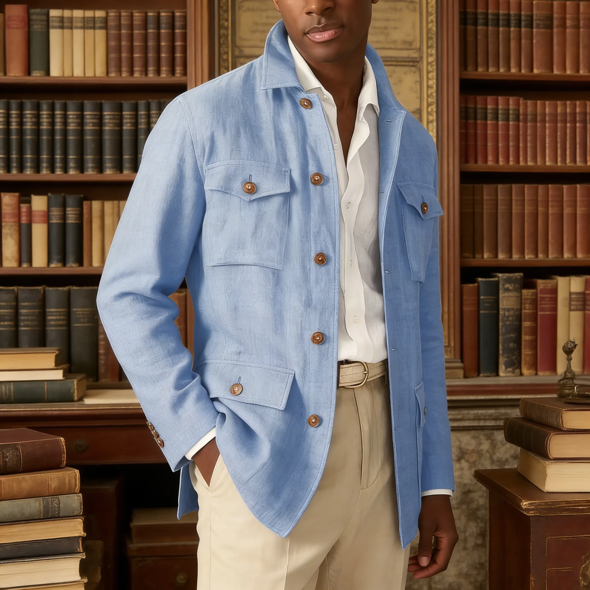 남성용 면 린넨 사파리 재킷 라펠 다용도 포켓 캐주얼 통기성 경량 빈티지 비치 웨딩 여름 블레이저