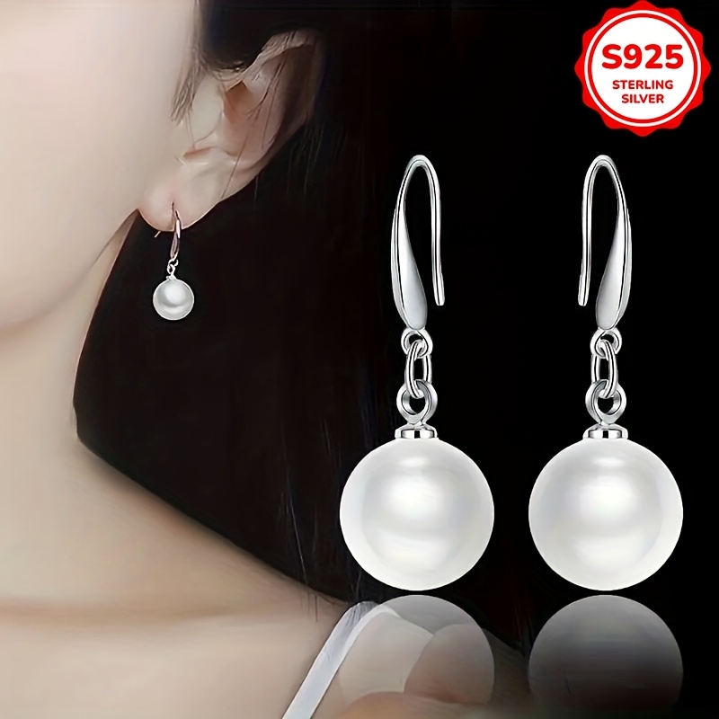 TEMU 1 쌍 여성 S925 스테인레스 실버 귀걸이 인공 진주 - 결혼식, 일상 착용 및 데이, 결혼식 보석, 세련된 공예