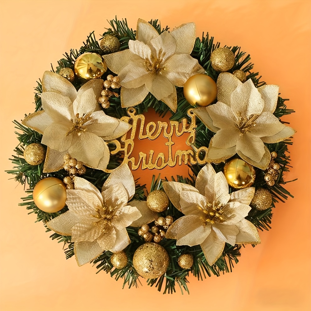 TEMU 우아한 골드 레스 & 플로럴 액센트가 있는 골드 볼 장식 - 스타일 크리스마스 벽걸이 장식, 전기 불필요, 내구성 좋은 폴리에틸렌 벽걸이, , 파티 용품, 크리스마스 장식, 크리스마스에 최고