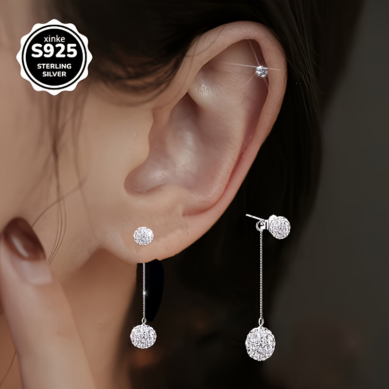 TEMU S925 실버 롱 귀걸이 - 반짝이는 지르코니아 액센트가 있는 우아한 드롭형 후프, 또는 선물용으로 완벽, 크리스마스, 발렌타인데이 주얼리, 축제 선물|우아한 후프 귀걸이|튼튼한 귀걸이