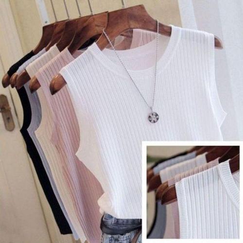 [에이치플러스몰]골지 여성 캐주얼 민소매 아이스 필수템 이너 티셔츠