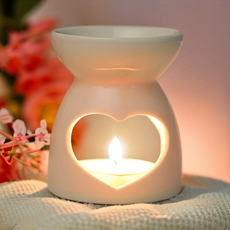 TEMU 1개 우아한 세라믹 촛대, 하트 & 플로럴 디자인 - 거실, 사무실, 티룸용 광택 테이블 장식 - 발렌타인데이, 크리스마스, 촛대 장식, 어버이날 선물로 완벽