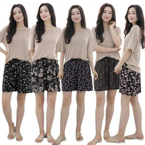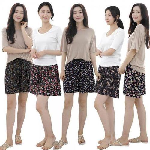 [에이치플러스몰]ksr 쿨 냉감 아이스 3부 반바지 밴딩 여성 여름 여자 잠옷 꽃바지 비치 팬츠