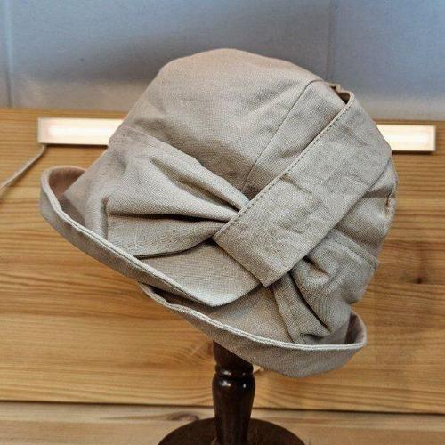 [애슬릿][애슬릿]린넨 무지 왕 리본 벙거지 중년 여성 봄 모자