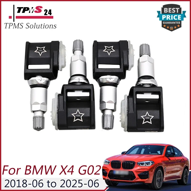 BMW X4 G02 2018-2025용 4X 433MHz TPMS 센서 6887140 36106887140 6887140-01 A0009052102 타이어 압력 모니터링 센서