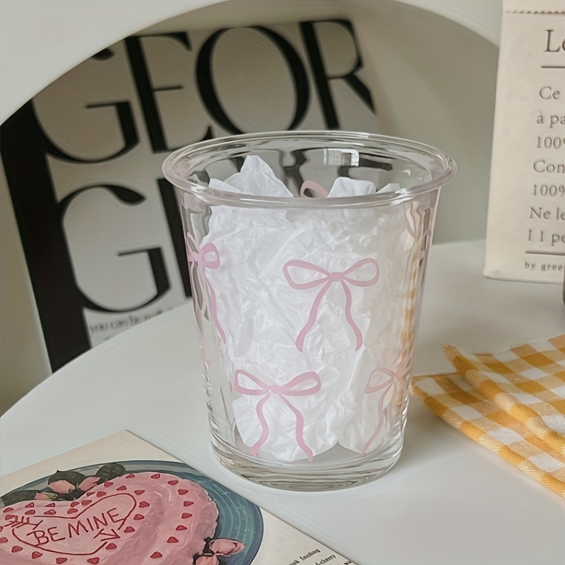 TEMU 1개 귀여운 리본 유리 컵, 고품질 달콤한 주스 잔, 다용도 우유 커피 잔, 아침 식사용, 친구 선물, 여름 음료 얼음물, 손세척전용 가능, 재사용 가능, 재활용 가능, 가정 주방 용품