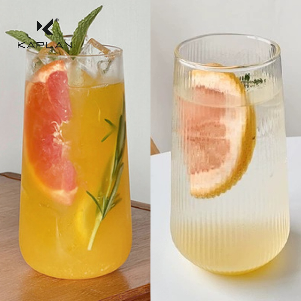 TEMU 2개 세트 매끄럽고 수직 패턴이 있는 물컵, 여름용 고강도 보로실리케이트 유리 차가운 음료 컵, 대용량 아침식사용 컵, 투명한 단일층 주스잔, 가족 및 파티 사용에 완벽, 친구를 위한 완벽한 선물, 추수감사절에 적합