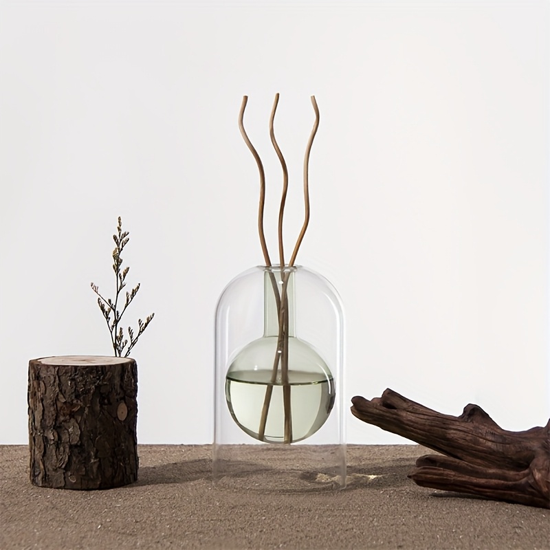 TEMU 우아한 유리 아로마테라피 디퓨저 병 - 모던 기하학적 디자인, 불꽃 없는 리드 디퓨저 화병 홈 데코용