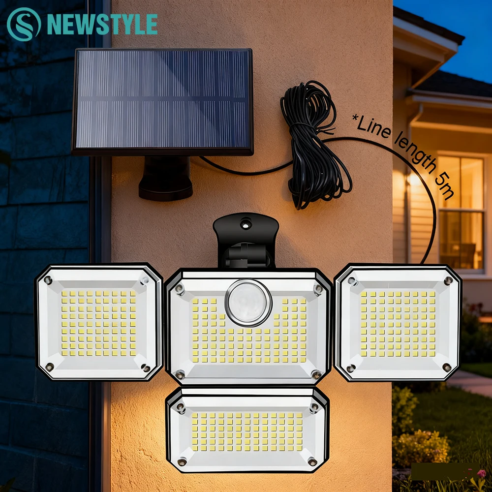 태양광 보안등 333/288 LED 야외 모션 센서 라이트 4헤드 벽등 방수 마당 파티오 정원 차고용