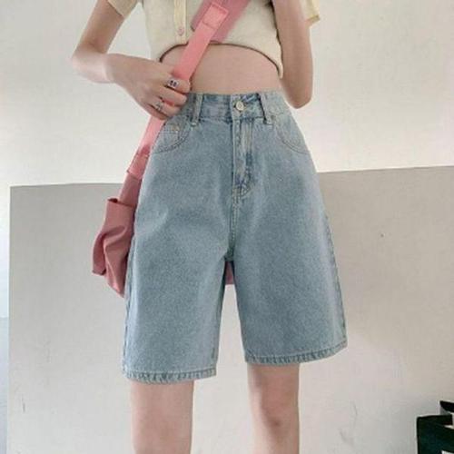 [에이치플러스몰]여성 여름 데일리 연청 5부 클래식 반바지 1P 와이드