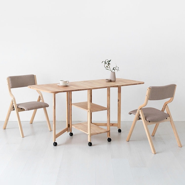 DIGOOD 이동식 접이식테이블 고무나무+벤우드 접이식의자 2인 세트