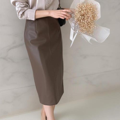 [옷자락]여성 가죽 스커트 H라인 절개 트임 안감 롱스커트