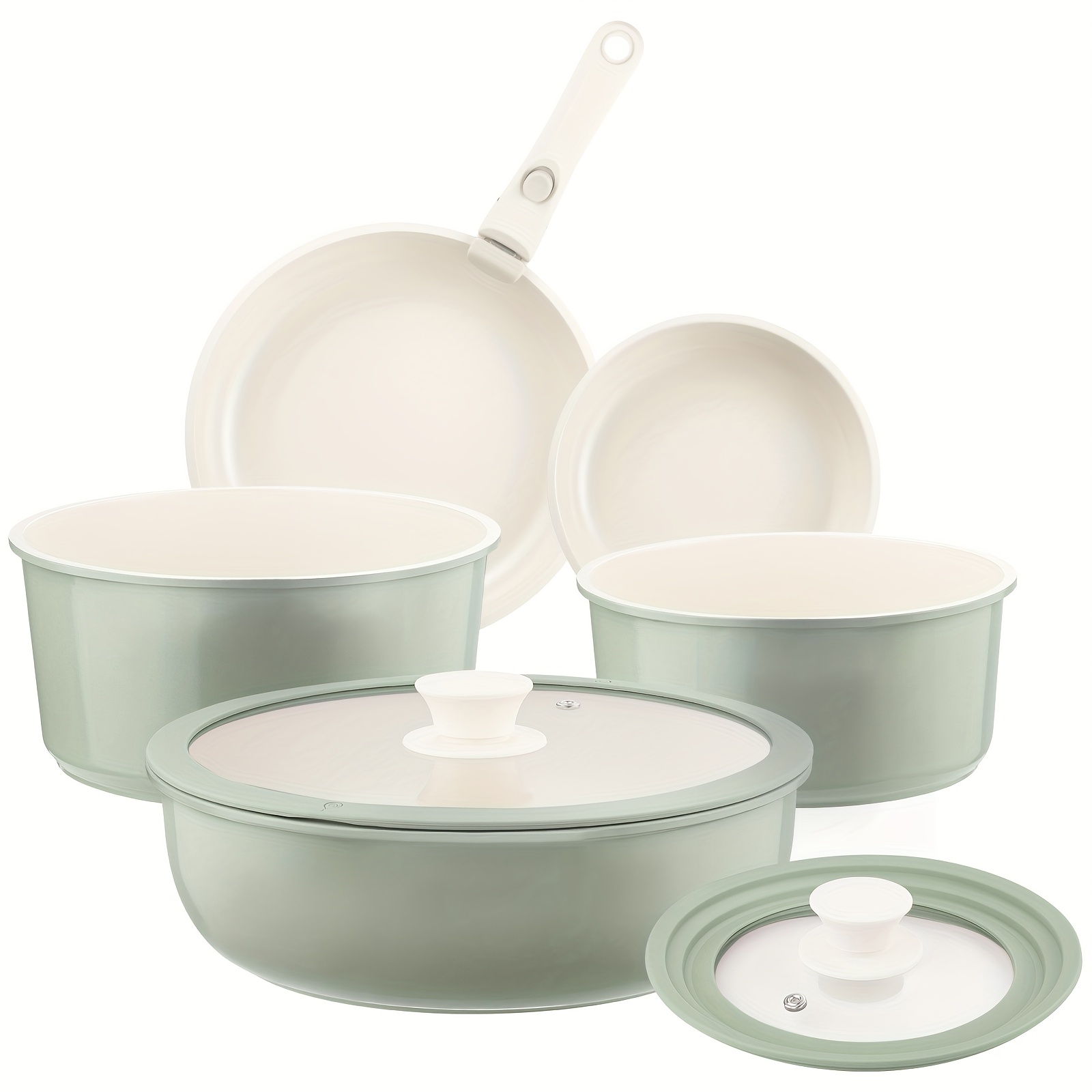 TEMU 11피스 딥 프라이팬 세트, 그린, 주방 조리기구, 모던 조리기구, 고품질 조리기구, 세라믹 코팅 안전 조리기구, 요리 애호가, 가정용 조리기구