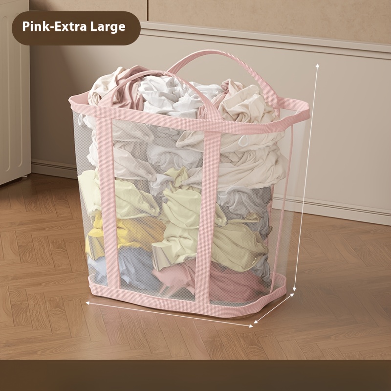 TEMU 스타일 접이식 메쉬 빨래바구니, 사이드 포켓 및 강화 핸들 포함, 옷 보관용, 세탁실·욕실·기숙사·여행용 빨래 액세서리, 내구성 좋은 패브릭 바구니, 빨래바구니|빨래바구니