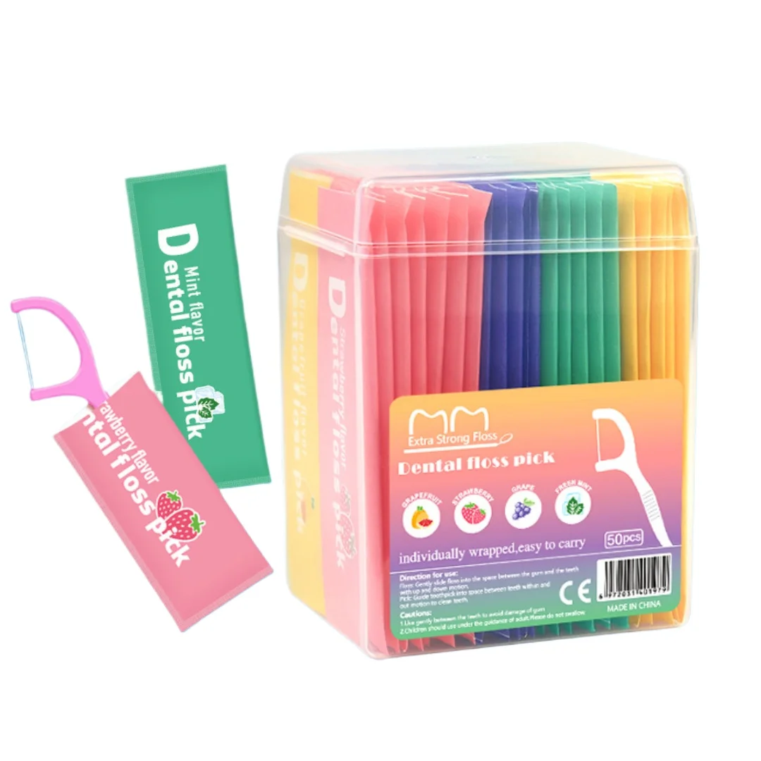 50개 초미세 과일향 치실 일회용 이쑤시개 휴대용 치실 픽 구강 관리 치아 청소 도구