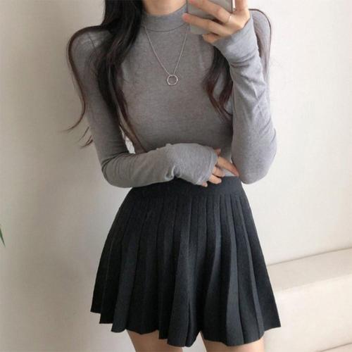 [쉬즈본] 닌유상의 /여성 무지 레이어드 목폴라 티셔츠 긴팔 니트 상의