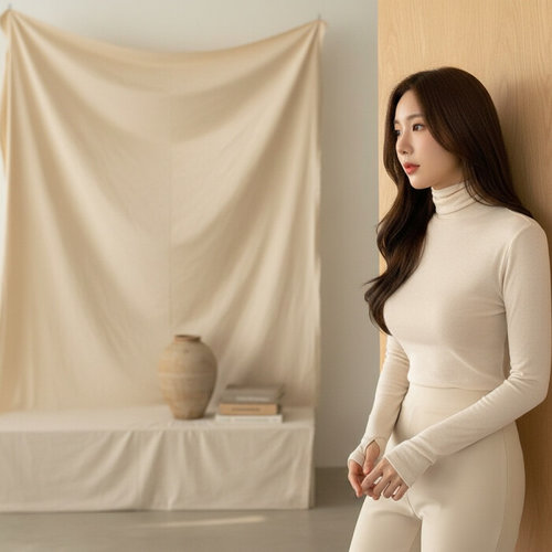 [신상오픈런]여성 앙고라 스판 긴팔 티셔츠 슬림핏 목폴라 이너웨어