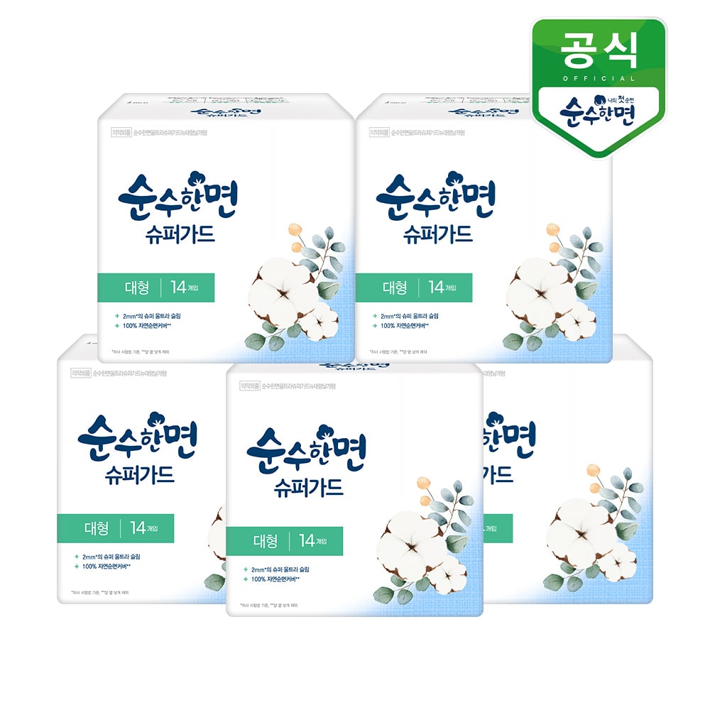 순수한면 생리대 슈퍼가드 대형 14P x 5팩