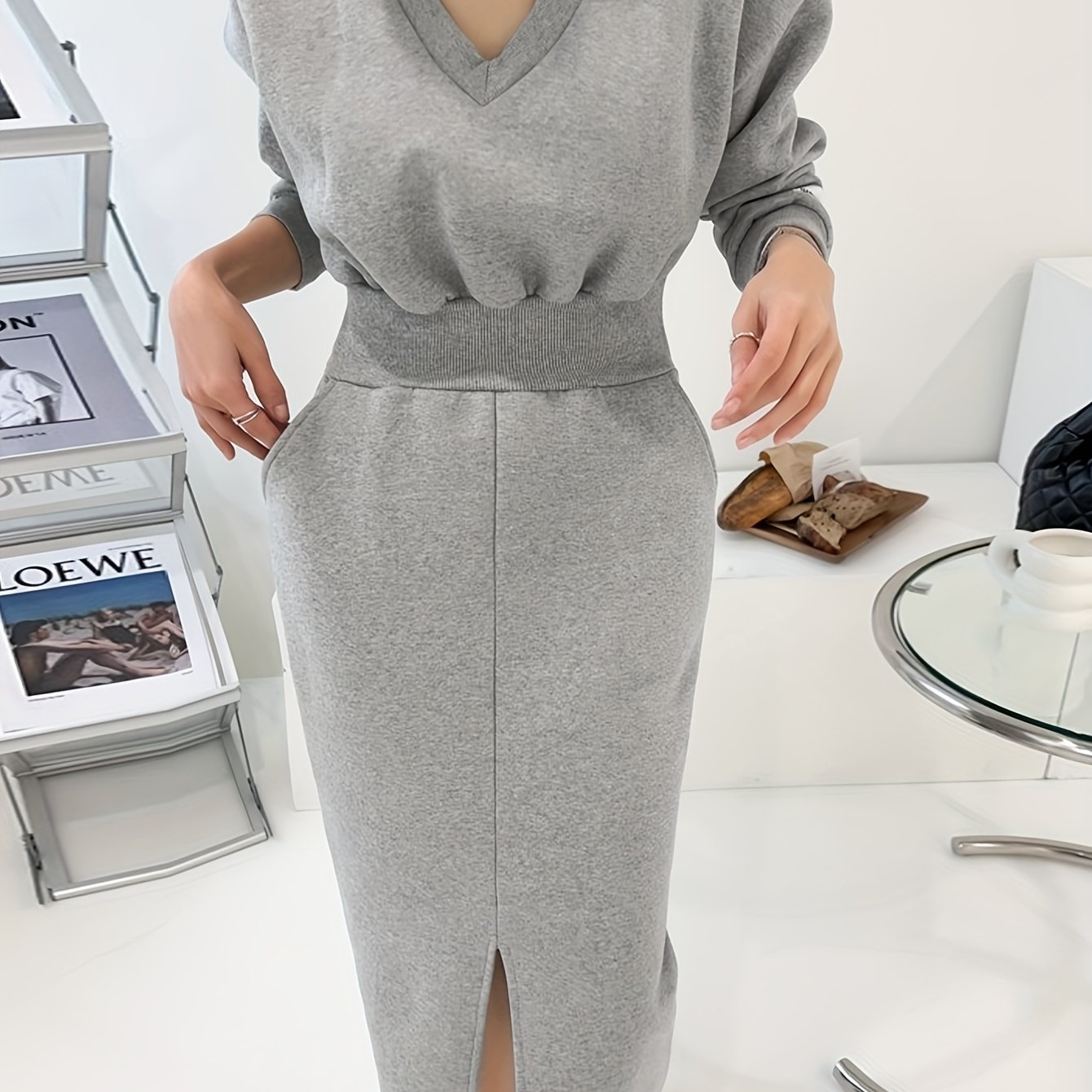 TEMU 가을 겨울 여성 캐주얼 V넥 솔리드 컬러 긴팔 드로스트링 허리 루즈핏 포켓 후드 드레스, 슬릿 헴 디자인, 스타일리시하고 다용도로 따뜻한 안감, 데일리 아웃팅에 편안한 A7401-1|여성원피스|인견원피스|가을원피스