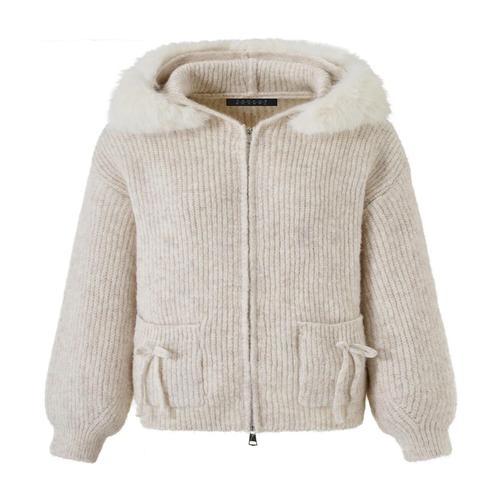 [탱커스]퍼 후드 투웨이 집업 울 니트 가디건 (TX4CD014L0)