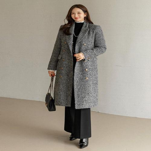 [스타일온미][스타일온미] 엔디스 벨트SET 울 블렌딩 보카시 부클 더블 롱 테일러드 코트