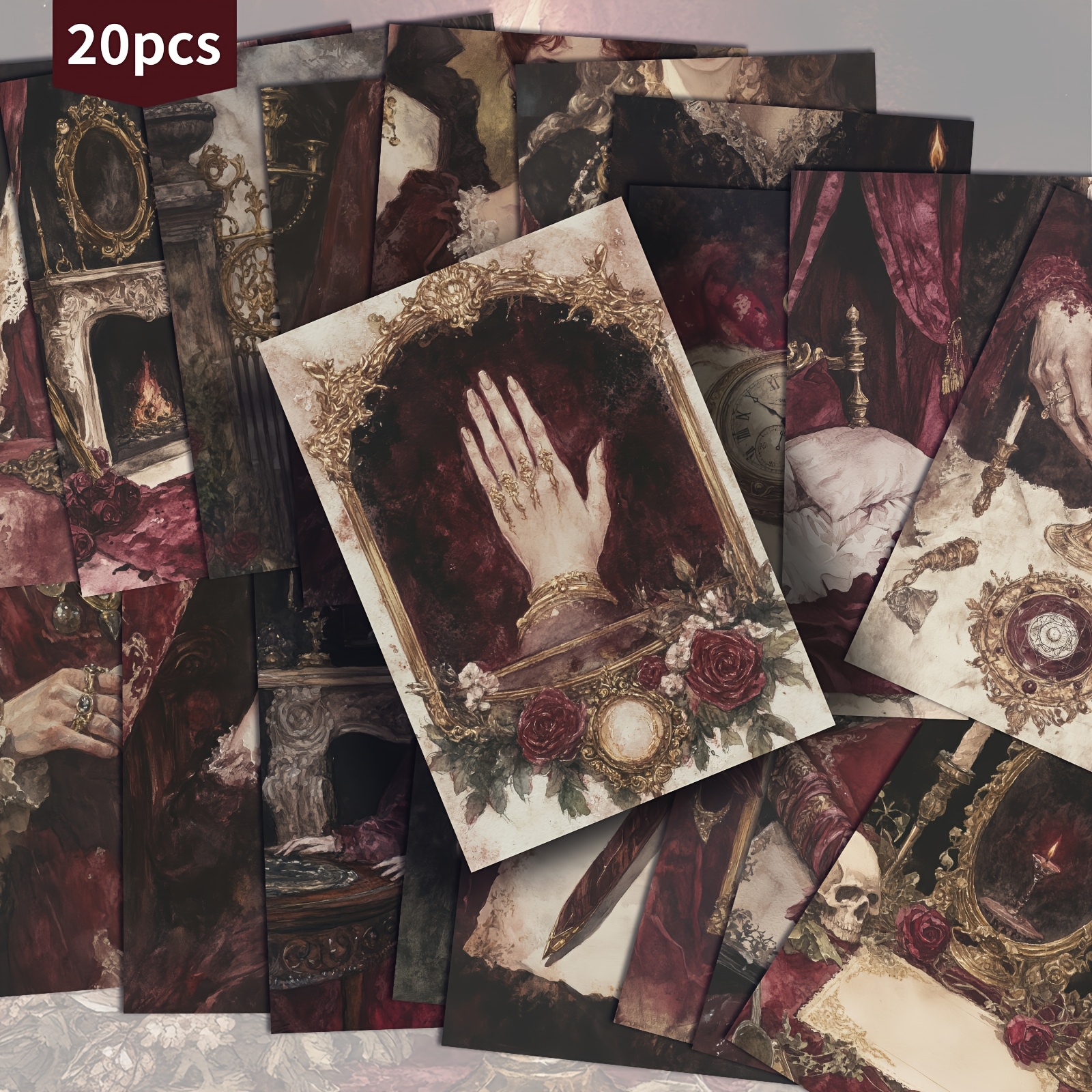 TEMU 20팩 빈티지 버건디 미스터리 포춘 레이디 엽서 - 4x6인치 레트로 정크 저널 용지, 클래식 핀업 일러스트레이션, 스크랩북 & 공예용 수집가 장식 카드