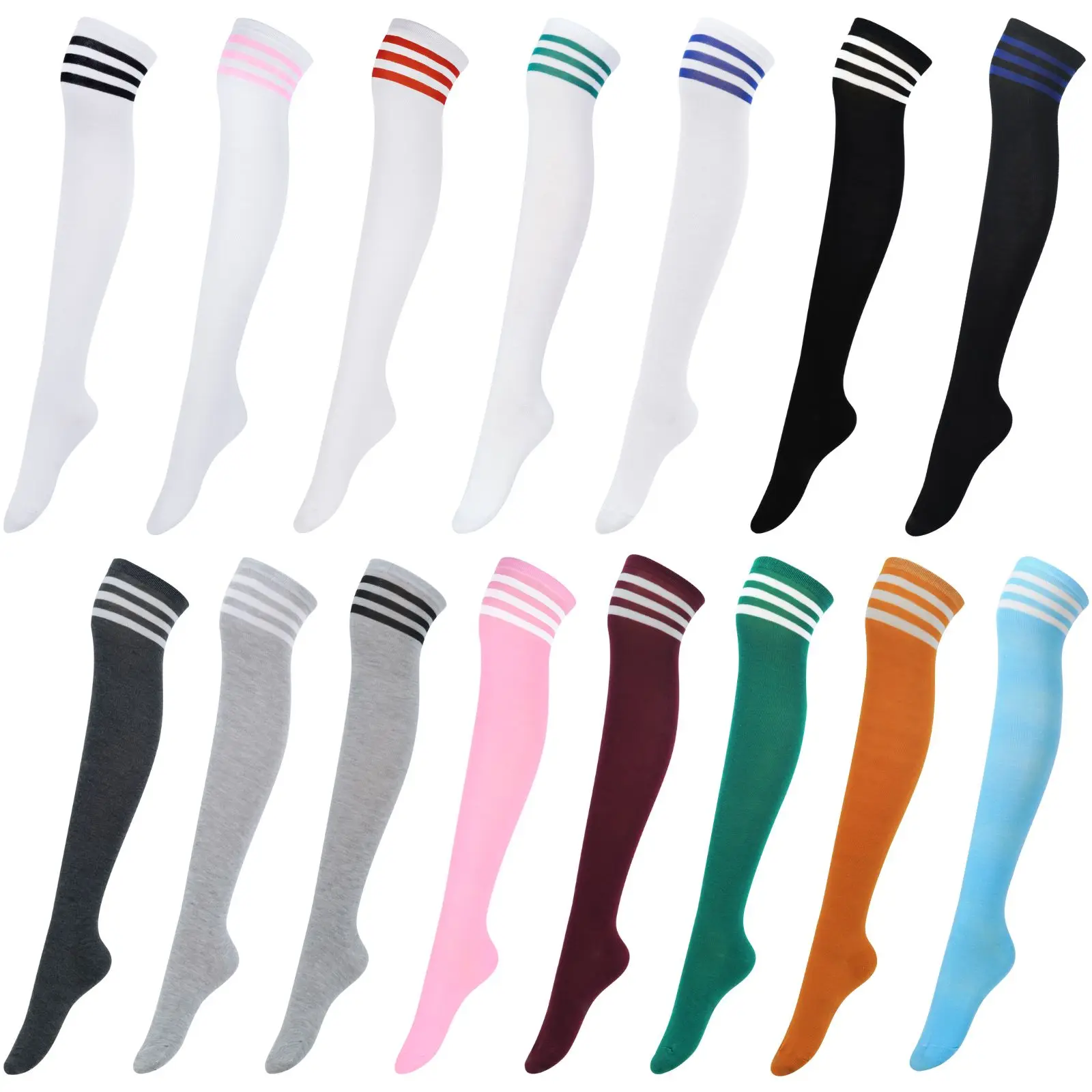 Intgoodluckycc 여성용 허벅지 높은 양말 고스 귀여운 카와이 무릎 양말 위에 줄무늬 코튼 긴 키가 큰 무릎 높은 스타킹