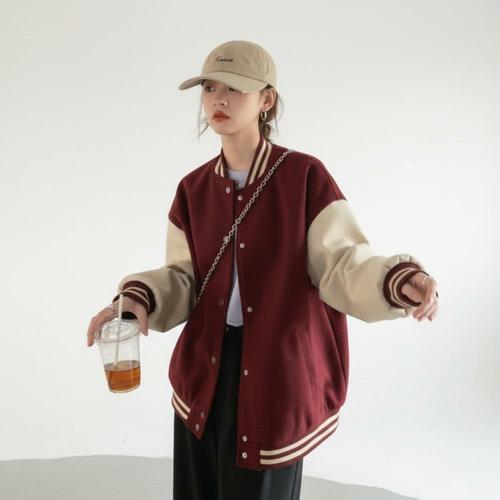 |CCJ6CEA|여성 오버사이즈 캐주얼 기모 배색 데일리 야구재킷