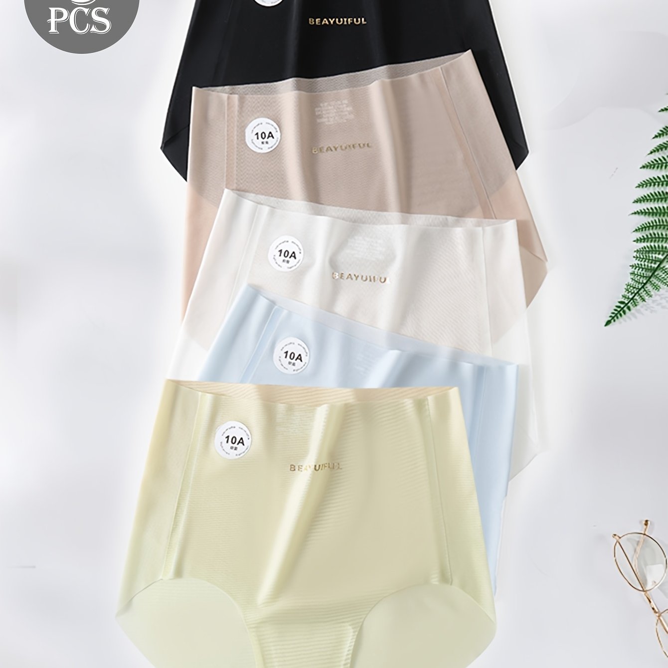 TEMU 여성용 하이웨이스트 초박형 심리스 누드감 10A 뽕나무 수액통とも呼ばれるムルベリー속걸레 아이스 섬유 원단 팬티 5개, 하이웨이스트 여름 속건성 엉덩이핏 속옷
