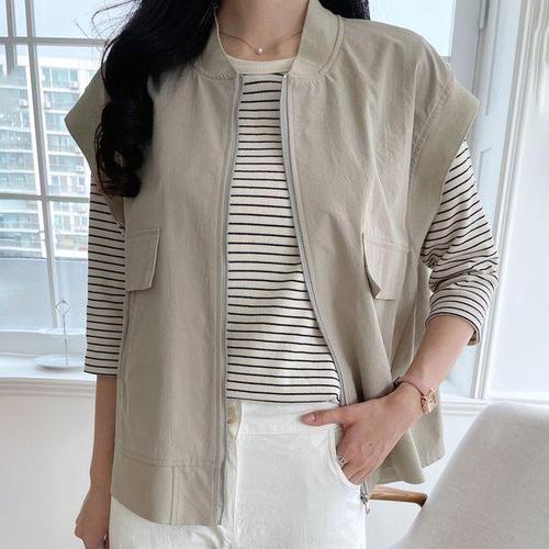 [옷자락] 여자 봄베스트 하이넥 스트링 바스락 버튼 야상 조끼