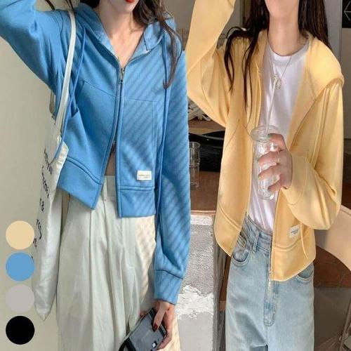 [셀러허브_여성트랜드패션]여자 얇은 후드 후드티 간절기 짧은 크롭 투웨이 집업