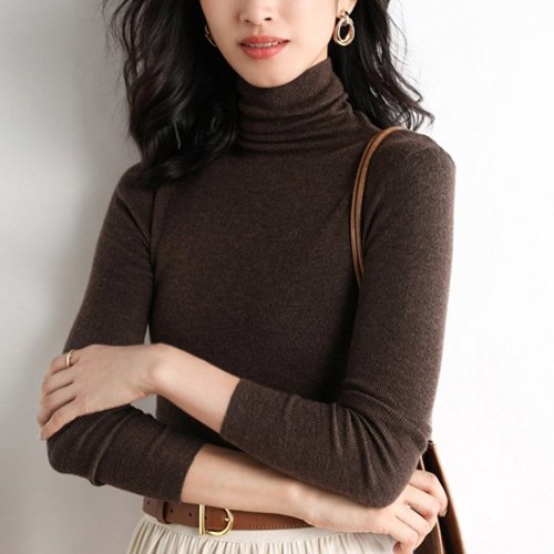 여자 얇은골지 반목 목폴라 슬림핏 긴팔 니트 티셔츠 6색 WFKMZ0X