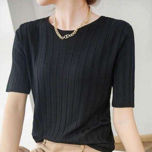 여자봄니트 반팔 여성니트 빅 얇은 여성목폴라티 WFLMF9O