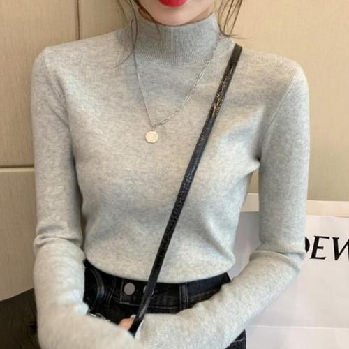 여자 반목 데일리 봄 반폴라 클래식 가을 겨울 부드러 얇은니트티 긴팔니트티 니트티셔츠