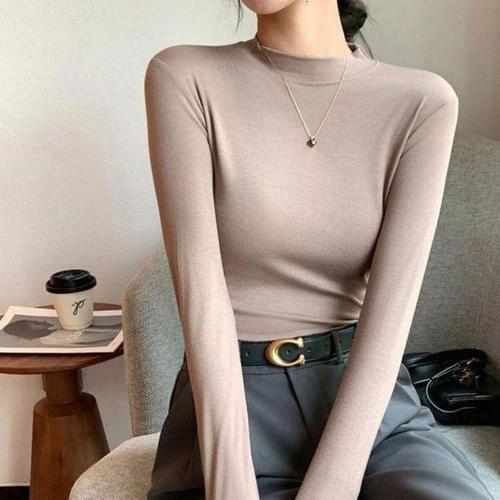 [셀러허브_여성트랜드패션]여자 하프넥 긴팔 반목티 얇은 이너티셔츠 4색