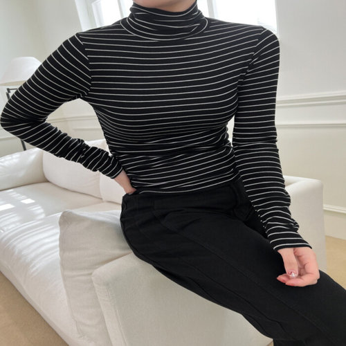 설세라 / 스트라이프 얇은폴라티 줄무늬 단가라 이너 목티